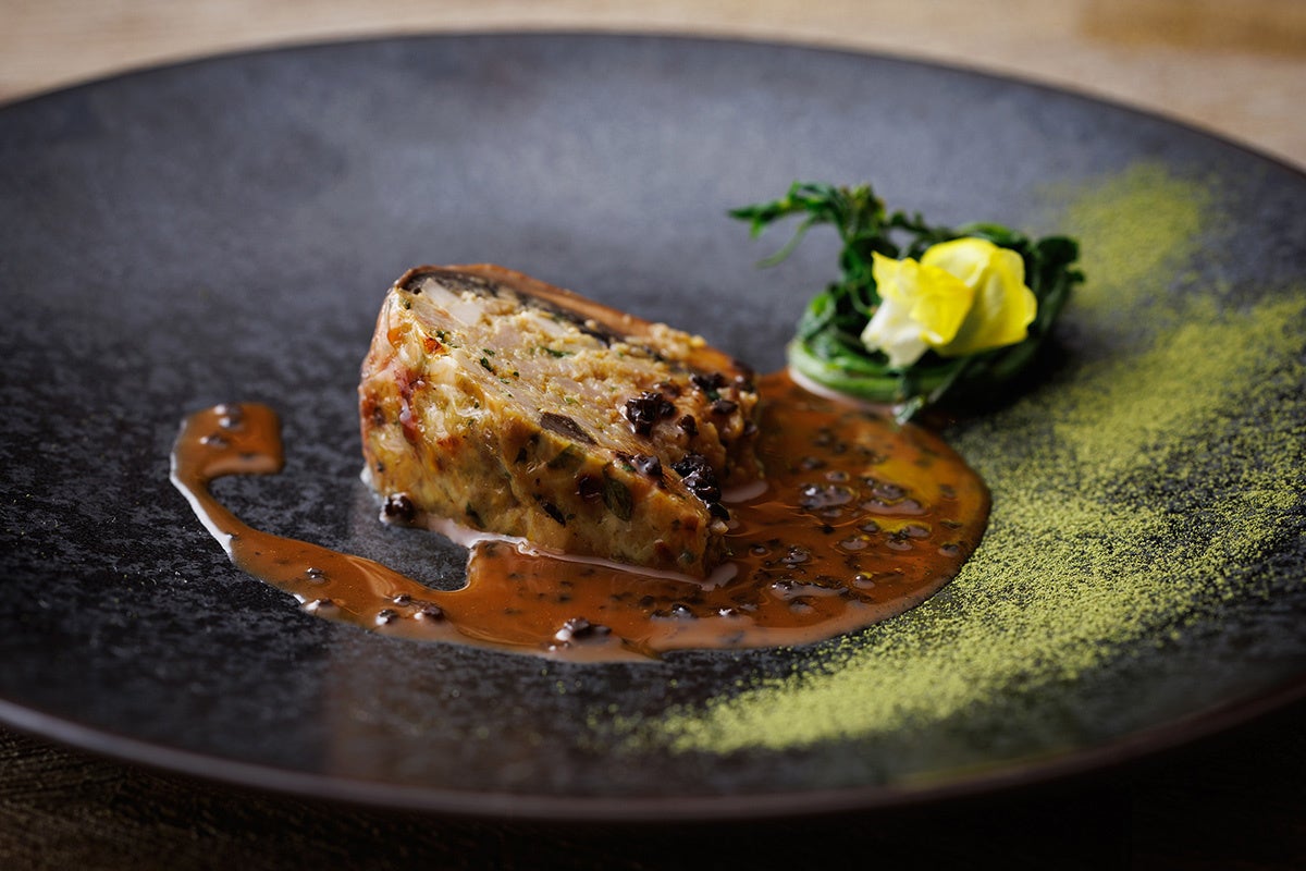 「TRAIN SUITE四季島」が運行する東日本各地から、三陸産鮑、山形県スーパージャンボ舟形マッシュルームや常陸牛など、岩崎と池内が選び抜いたこだわりの食材を使ったフルコースを提供します。今回は能登復興の思いをこめて、輪島ふぐなども使用いたします。また、コースの締めくくりの食事には「四季島」車内でも提供したことのある、エドモント内の鮨「海彦」の職人が会場でにぎり鮨をふるまいます。