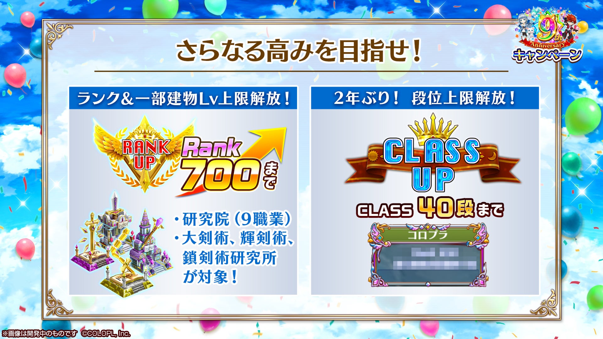 このほかにもプレイヤーランクや段位の上限解放やプレゼントクエストなど、様々なコンテンツを追加しております。9周年を迎え盛り上がっていく『白猫』にご注目ください。
