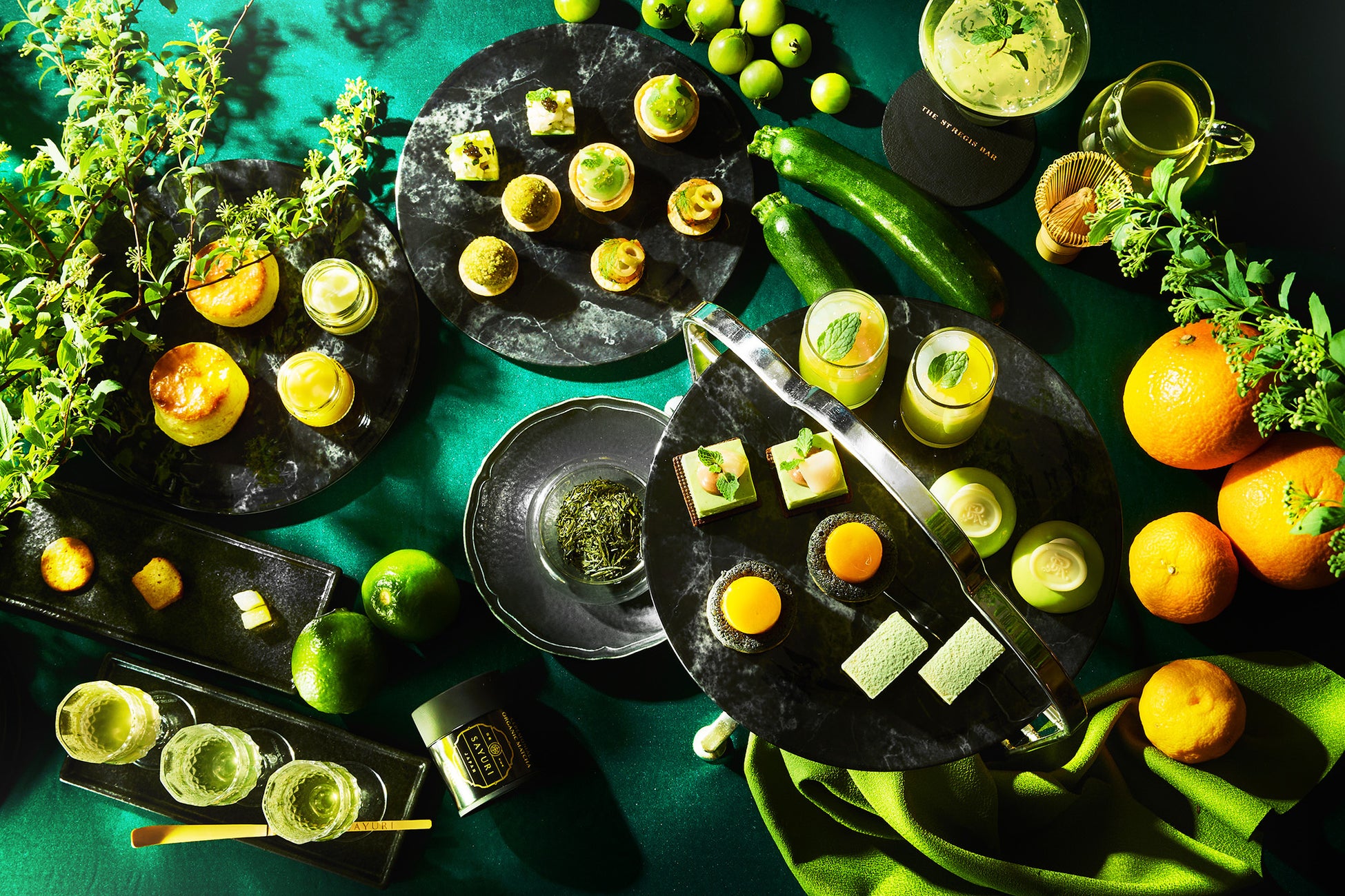 香り高い新茶や、ライム、柚子など柑橘類を使用し、グリーンカラーを纏った見た目も涼やかなスイーツ&セイヴォリーと、日本茶を世界に広める「SAYURI」の洗練された新感覚のお茶のティーペアリング