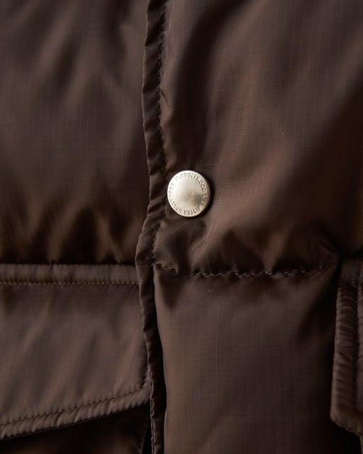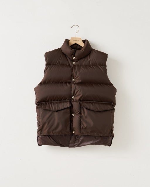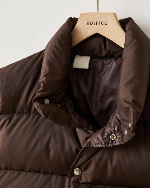 ダウンベストはラウンドした裾、ポケットのデザイン、縫い目のないネックディテールは70‘sオマージュのレトロデザインになります。