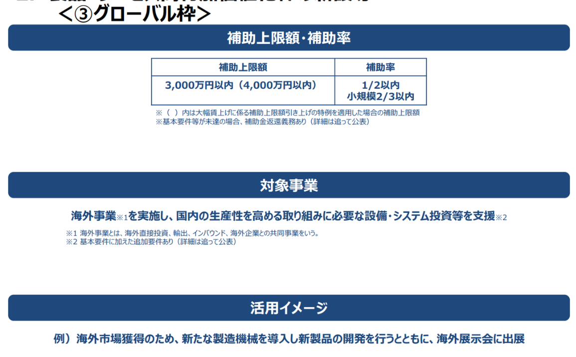 AMS 自動車整備補助金助成金振興社とファインピースは、海外進出を実施する際の資金調達支援を開始した。最大4,000万円補助される「グローバル枠」の無料相談を開始。