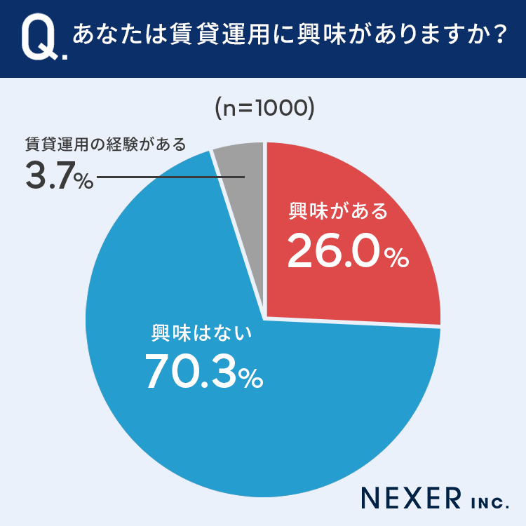 26%の方が「賃貸運用に興味がある」、3.7%の方が「賃貸運用の経験がある」と回答しています。