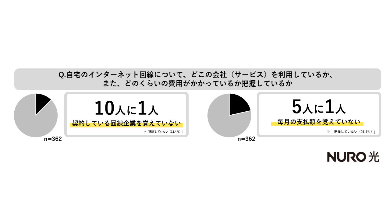 ④ 10人に1人は契約しているインターネット回線の会社を覚えておらず、5人に1人は毎月の支払い額を把握していない。さらに、約40%はネット回線をきちんと選べていない。