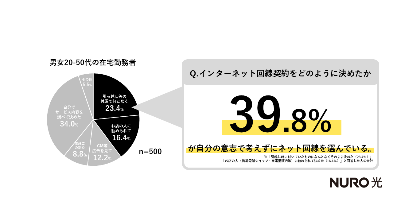 ソニーネットワークコミュニケーションズ株式会社の提供する高速光回線サービス「NURO 光」は、「通信回線が業務効率に与える影響、その損失に関する調査」を実施しました。2022年3月11日から13日の期間、週一度以上在宅勤務で自宅のインターネットを使用する男女20-50代の500 名を対象に調査しています。