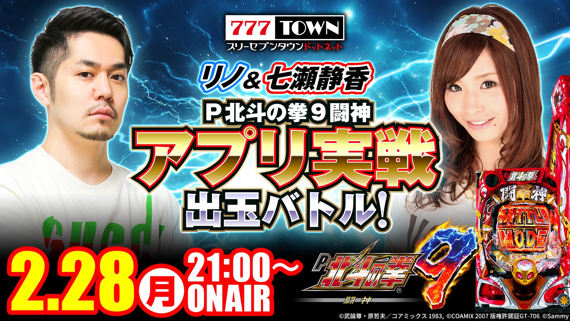 リノ、七瀬静香が「P北斗の拳9 闘神」アプリで生放送!777TOWN.netで出玉イベント開催