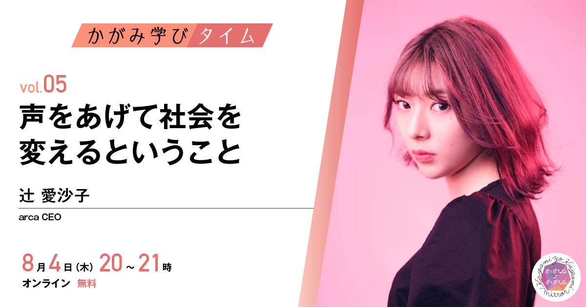 株式会社朝日新聞社(代表取締役社長:中村史郎)が運営する女性のためのエッセイ投稿サイト「かがみよかがみ」(https://mirror.asahi.com/) は8月4日、株式会社arca代表でクリエーティブディレクターの辻愛沙子さんをゲストに招き、無料オンラインイベント「かがみ学びタイム」を開催します。
