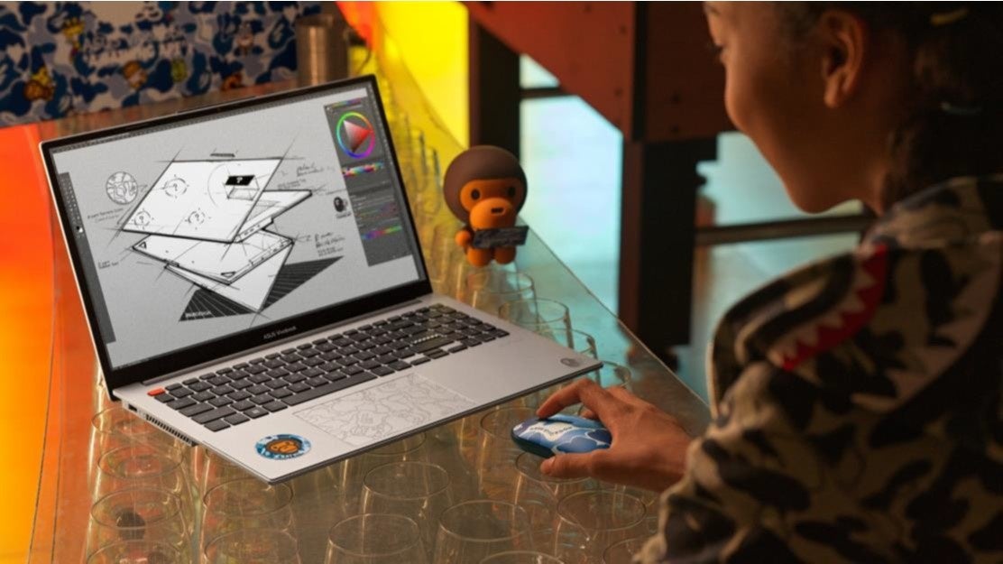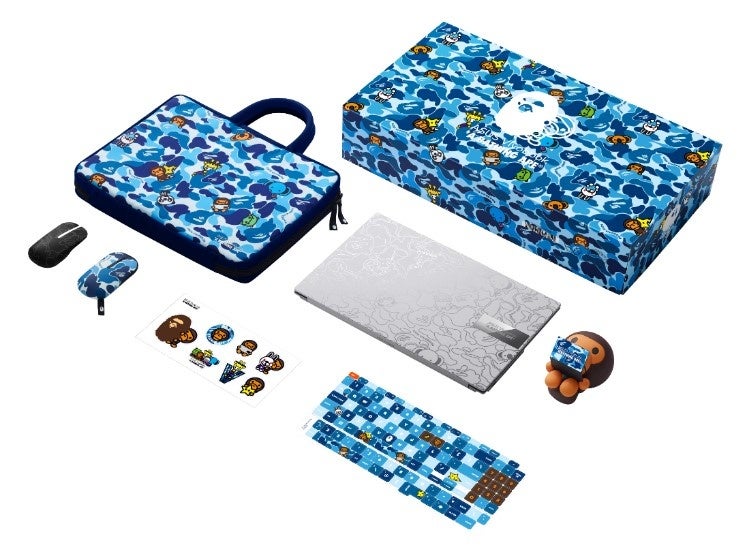 「ASUS Vivobook S 15 OLED BAPE® Edition K5504VA」は、1993年に東京で生まれ、30年以上にわたって日本のストリートファッションのシンボルとしてあり続ける「A BATHING APE®」と「ASUS Vivobook」シリーズのコラボレーションモデルで、特別にデザインされたカモフラージュパターンや「A BATHING APE®」のファンの方に長年愛されてきた人気キャラクターの「BABY MILO®」をノートPC本体やアクセサリに展開し、新しいファッションとテクノロジーのカタチを実現しています。15.6型ノートPCでありながら、薄さ約19.35mm、軽さ約1.6kgと一般的な15.6型ノートPCよりも圧倒的な薄さと軽さであらゆる場所に持ち運ぶことが可能です。