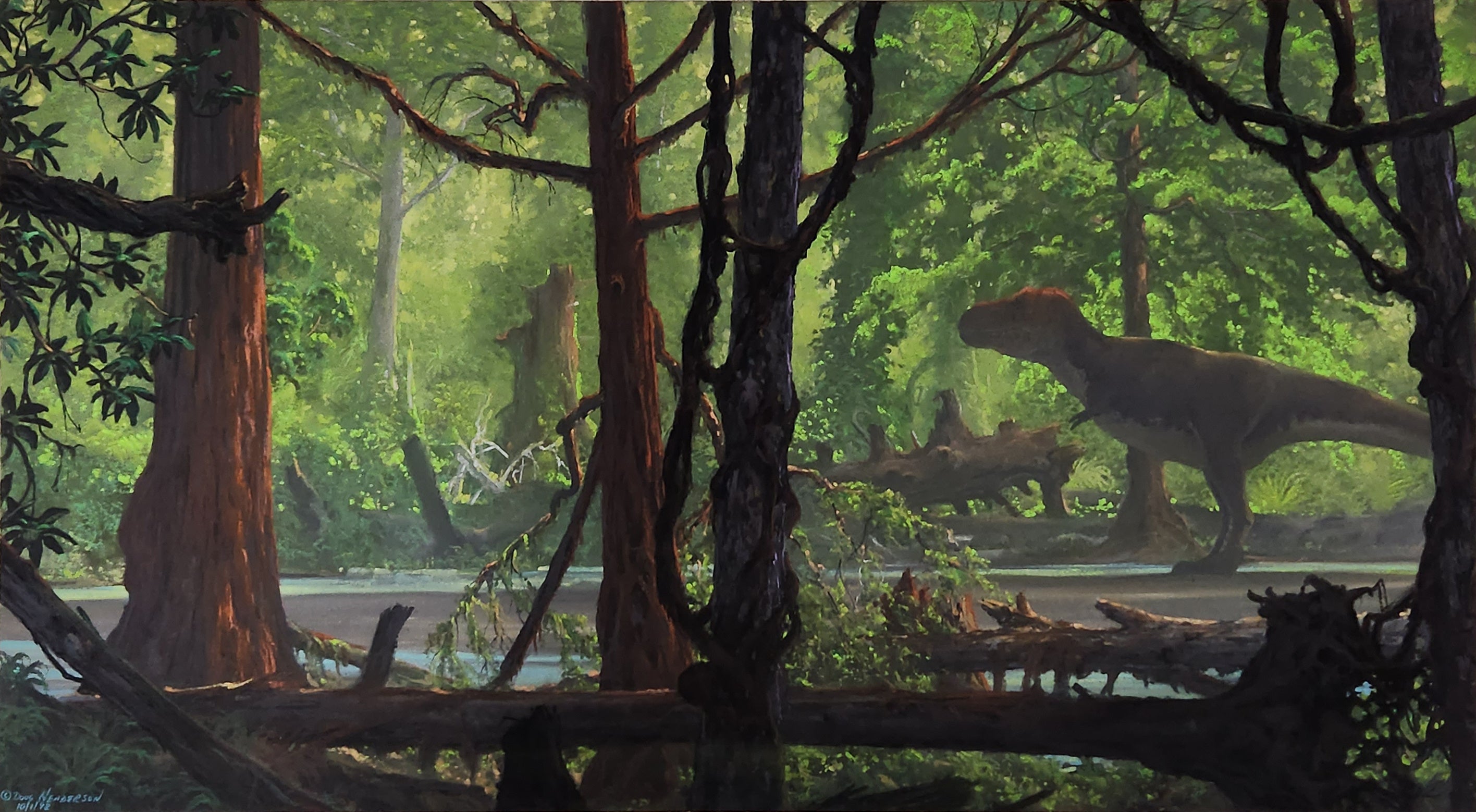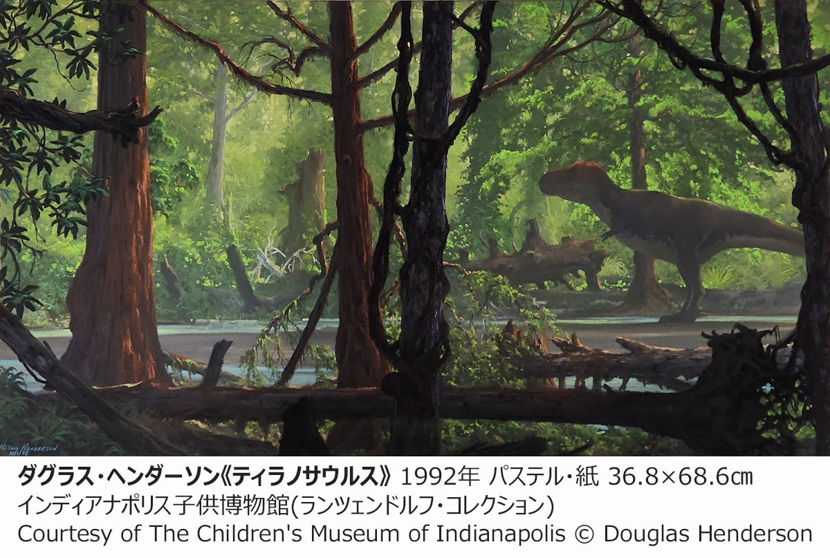 1960年代から70年代にかけて、「恐竜ルネッサンス」ともよばれる大きな変革がもたらされます。「鈍重な生き物」から「活発に動く恒温動物」へと恐竜像が変化したことに伴い、恐竜画もさらなる進化を遂げ、新しい表現のアーティストが次々と登場します。本展では、インディアナポリス子供博物館や福井県立恐竜博物館のコレクションから、ファンタジーアートの領域でもカルト的な人気を誇るアメリカのイラストレーター、ウィリアム・スタウト、パステルを駆使して太古の世界の光と影を精緻に表現するダグラス・ヘンダーソンなど、現代の恐竜画の旗手たちのバラエティ豊かな作品群が集結します。また、現代日本を代表するパレオアーティスト、小田隆の迫力ある作品も特集します。