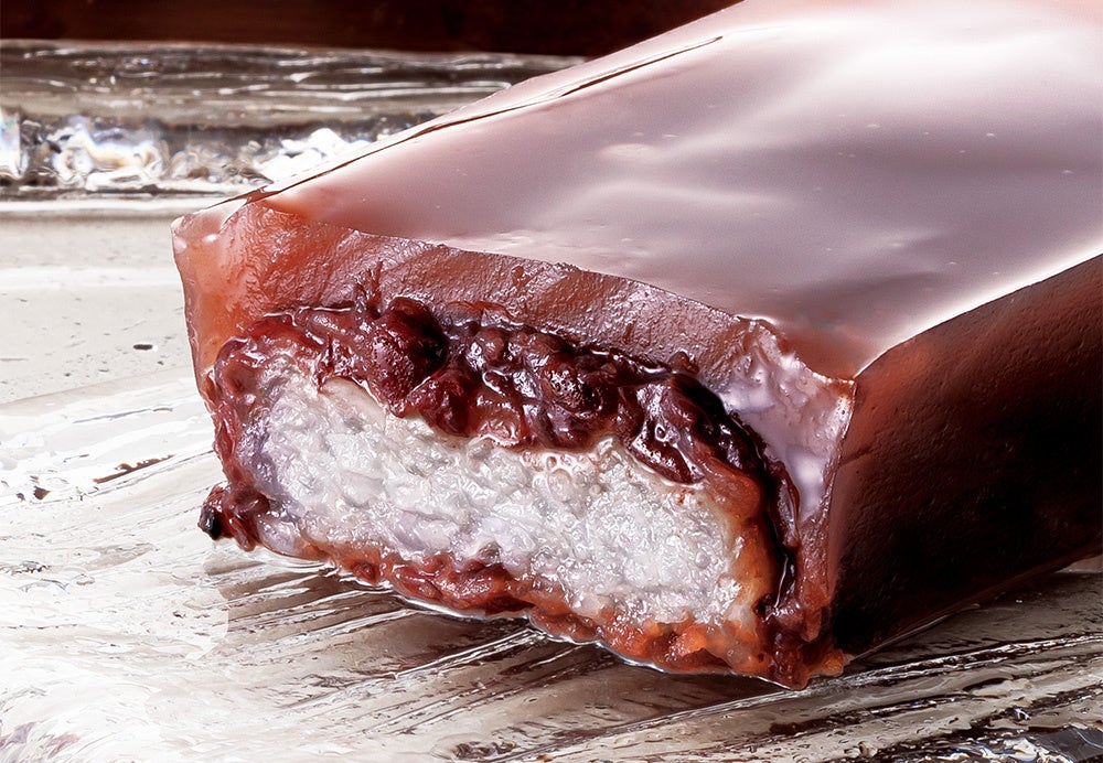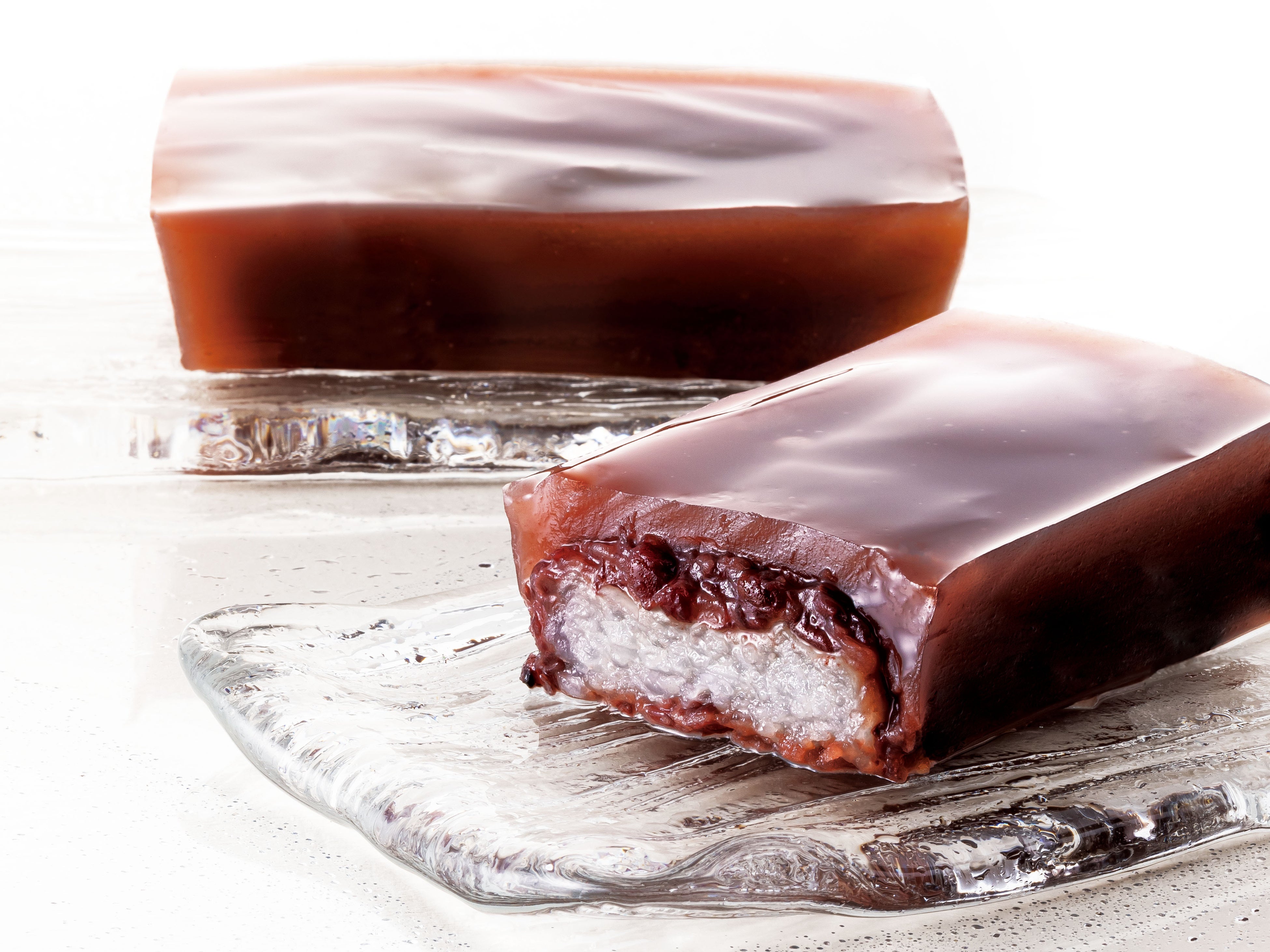 美味しいおはぎが水羊羹を羽織ったら、こんなにさっぱりなめらかな口当たりになりました。水ようかんの中には風味豊かな「北海道あずき」と、もちもちに搗きあげた「満月もち米」でこしらえた“ 特製おはぎ ”を、2個丸ごとイン!“粒あん”と“こしあん”、ふたつの餡子の食感を楽しめる贅沢なおはぎもちです。真ん中でふたつにとりわけて、おひとつずつどうぞ。