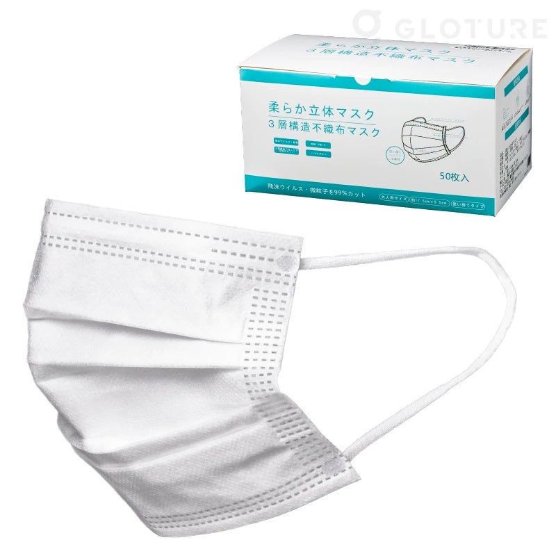 ①立体3層不織布 99.9%カット 使い捨て 柔らか立体マスク (大人用)100枚セット
