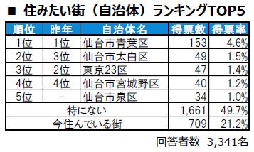 ※「住みたい街ランキング」では、行政区はまとめて一つの自治体として集計していますが、仙台市は行政区を分けて集計しています。