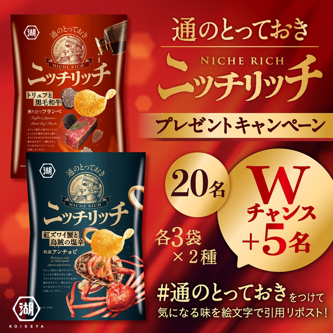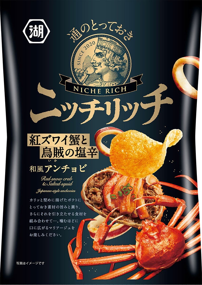 知る人ぞ知る、至福の食べ合わせを味わう創作ポテトチップスが今年も登場!「ニッチリッチ トリュフと黒毛和牛 薫り立つフランベ」「ニッチリッチ 紅ズワイ蟹と烏賊の塩辛 和風アンチョビ」