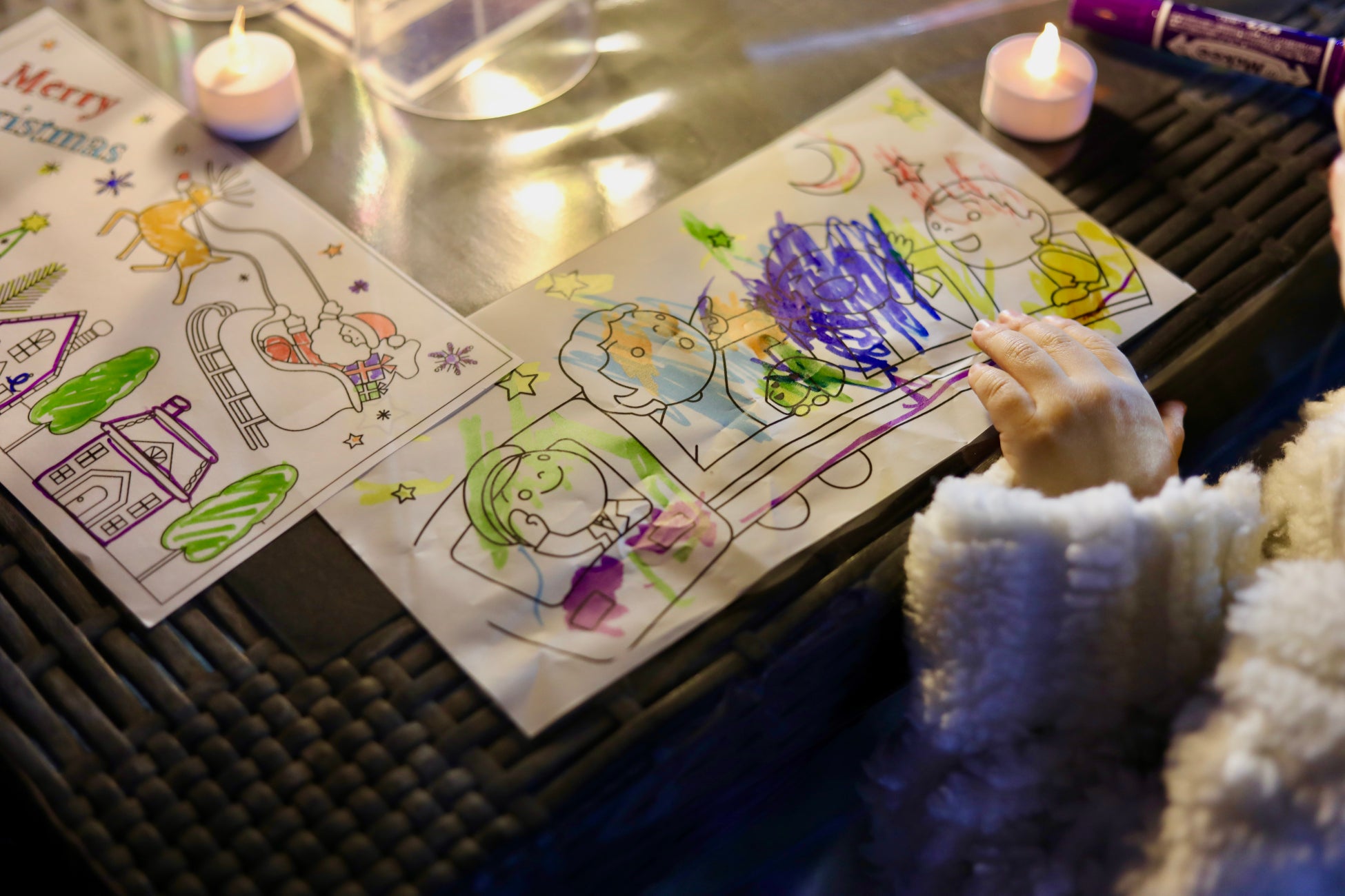 完成したぬり絵はキャンドルを包むキャンドルホルダーに入れてイルミネーションの一つとして会場に飾ります。
