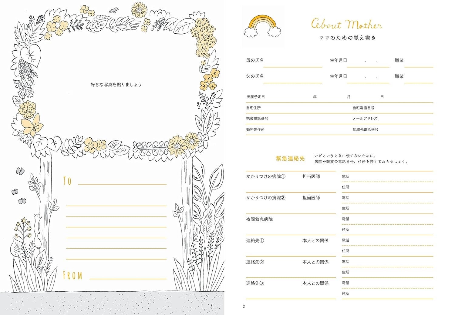 日付記入式で、いつからでも使い始めることが可能です。豊富なイラストが楽しく、プレゼントにも最適。医師監修による妊娠や育児情報コンテンツも充実しており、妊娠期の不安や子どもの健康、予防接種の情報など、いざというときに役立ちます。