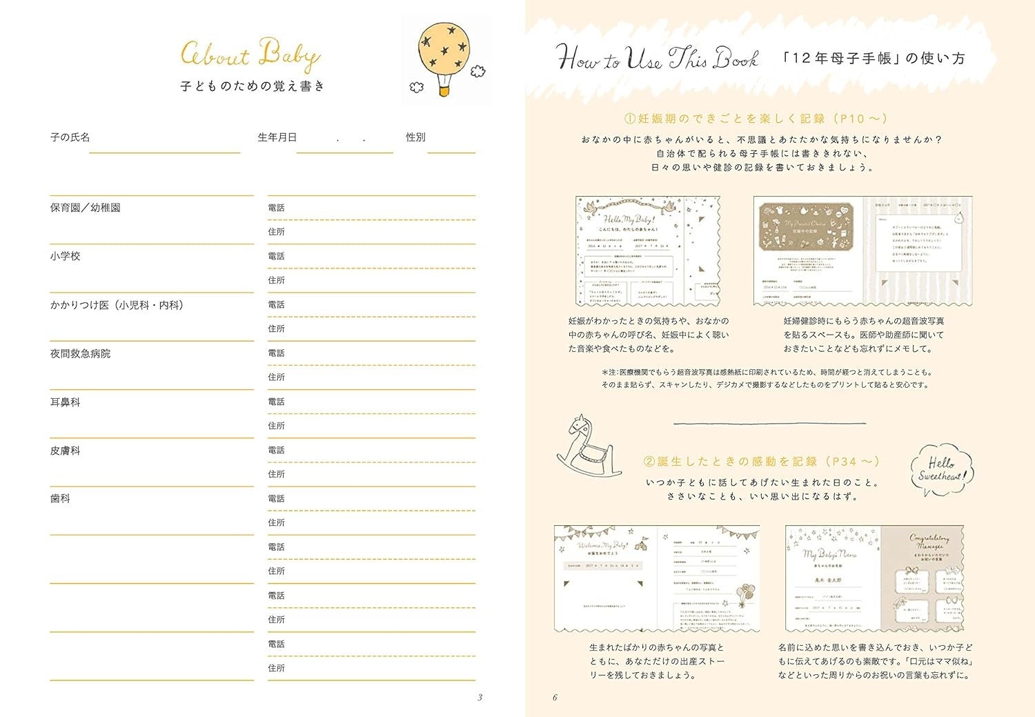 この『12年母子手帳』は、私が息子を出産した後の体験をもとに企画しました。妊娠中から誕生後に至るまで、あっという間にすぎてゆく日々の中、忘れたくない!と思う瞬間がたくさんありました。すぐに書きとめておこうと、あらゆる育児日記を見比べてみたものの、なかなか自分の理想通りの期間やフォーマットのものが見つかりません。「それならば、自分で作ってしまおう!」と思いたち、ほしい機能を全て詰め込んだのが本書です。妊娠がわかったときの嬉しさ、子どもの初めての笑顔、言いまちがい、めぐる記念日、その時々の悩みなど、トピックを書き込める特別なスペースもたくさんご用意しています。かけがえのないお子さまとの時間を記録していただきながら、折に触れて読み返していただくのもおすすめです。この手帳が、みなさまとお子さまの未来に向けて大切な思い出を紡ぐお手伝いができることを心から願っています。