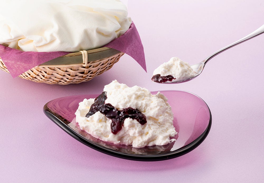 SNSや口コミでも「想像以上のふわふわ!」「一人で全部食べれちゃいそう…!」「一生食べ続けたい」など、雲のようにふわっふわなくちどけとさっぱりとした味わいが大好評。今回はその『白らら®』の中に巨峰ソースを閉じ込めた、ファン待望の季節味『チーズケーキ かご盛り白らら<巨峰ソース入り>』が期間限定で登場いたします。