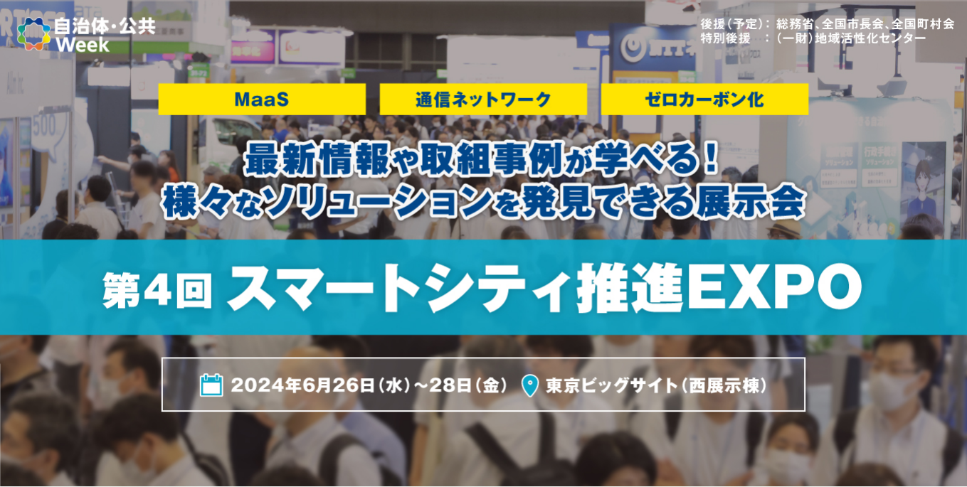 自治体・公共Week2024内 第4回 スマートシティ推進EXPO 会期:2024年6月26日[水]-28日[金]10:00~17:00 会場:東京ビッグサイト(西展示棟)