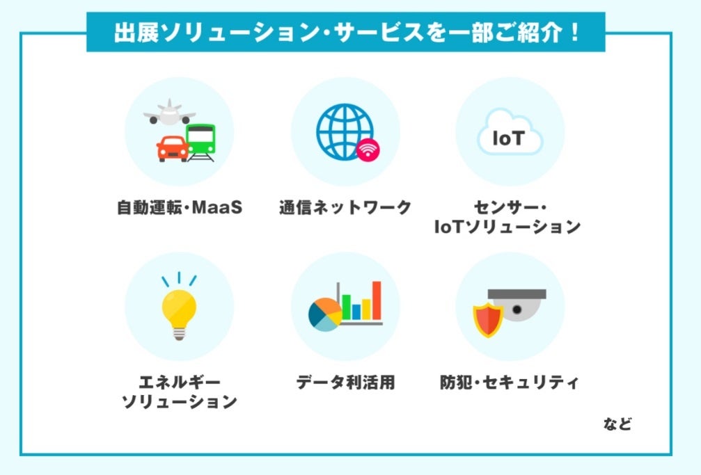 スマートシティの実現を目指した「MaaS」「通信ネットワーク」「ゼロカーボン化」などのサービスが一堂に出展する展示会です。