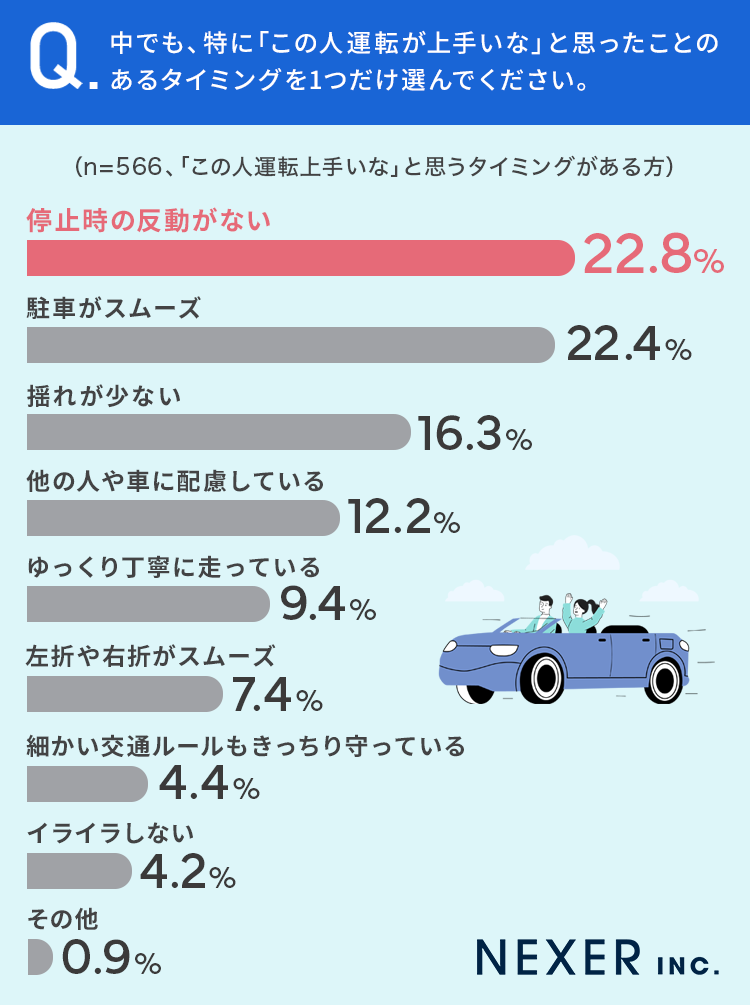 中でも、特に「この人運転が上手いな」と思ったことのあるタイミングを1つだけ選んでもらいました。