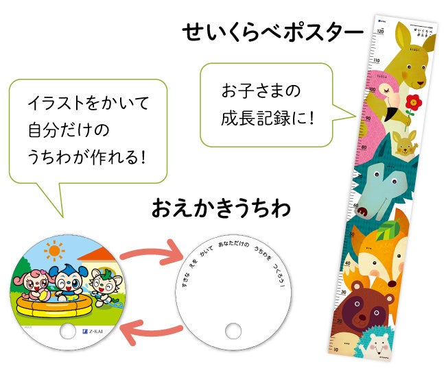 さらに、2025年8月29日(金)までにお申し込みいただいた方には、「おえかきうちわ」「せいくらべポスター」もおためし教材と一緒にお届けします。