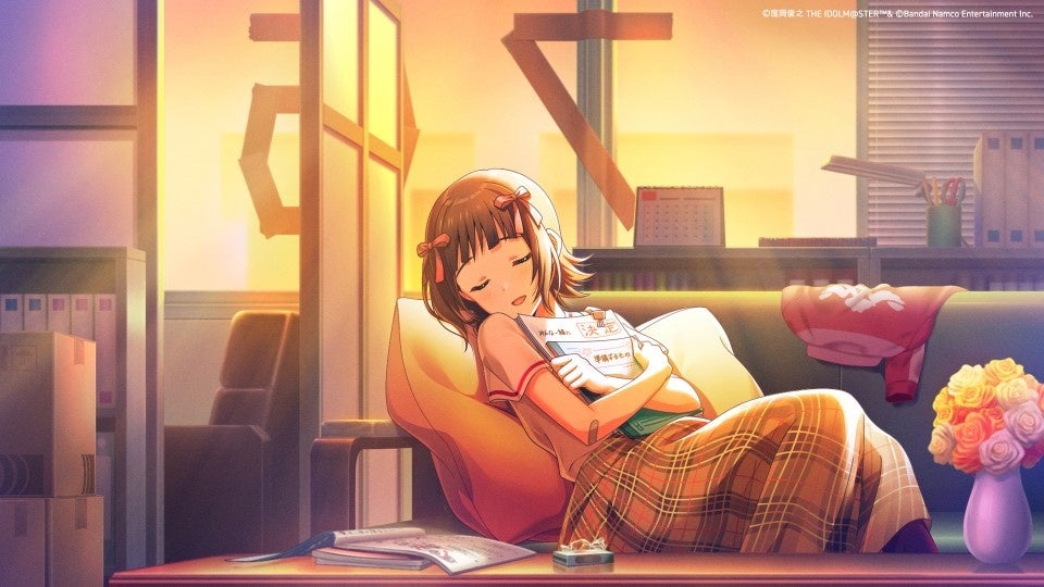 20周年ティザービジュアル第1弾として、「765PRO ALLSTARS」の「天海 春香」のイラストを公開いたしました。何かの準備をしていたのか、資料などを抱えたままうたたねしている春香の様子が描かれております。