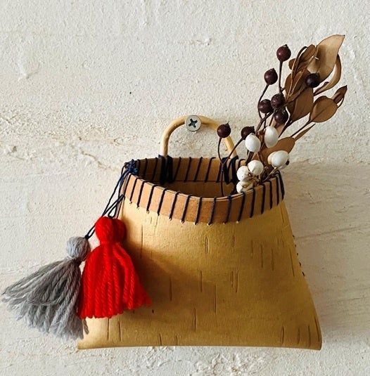 壁に掛ける白樺のカゴを作ります。