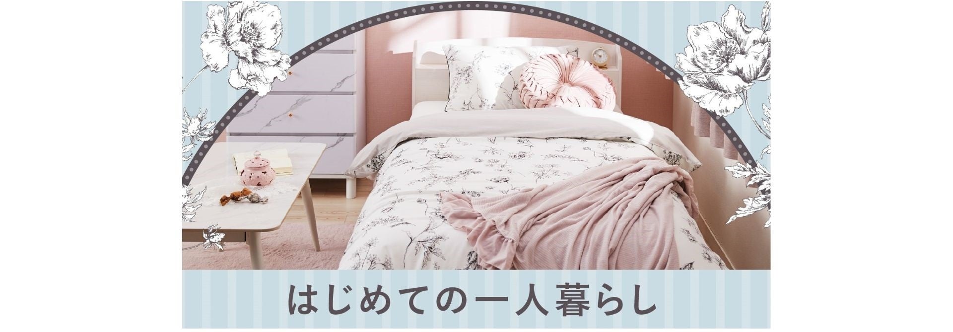 これから始まる一人暮らし。デコホームなら、かわいい家具やインテリアがお手頃価格で揃います。初めてで何が必要かわからない、という不安にお応えするため、特集ページを公開しました。