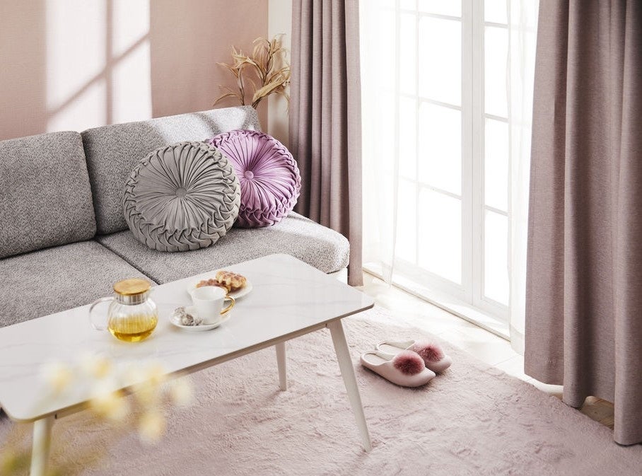 カーテンとラグの色を揃えるとおしゃれな印象に
