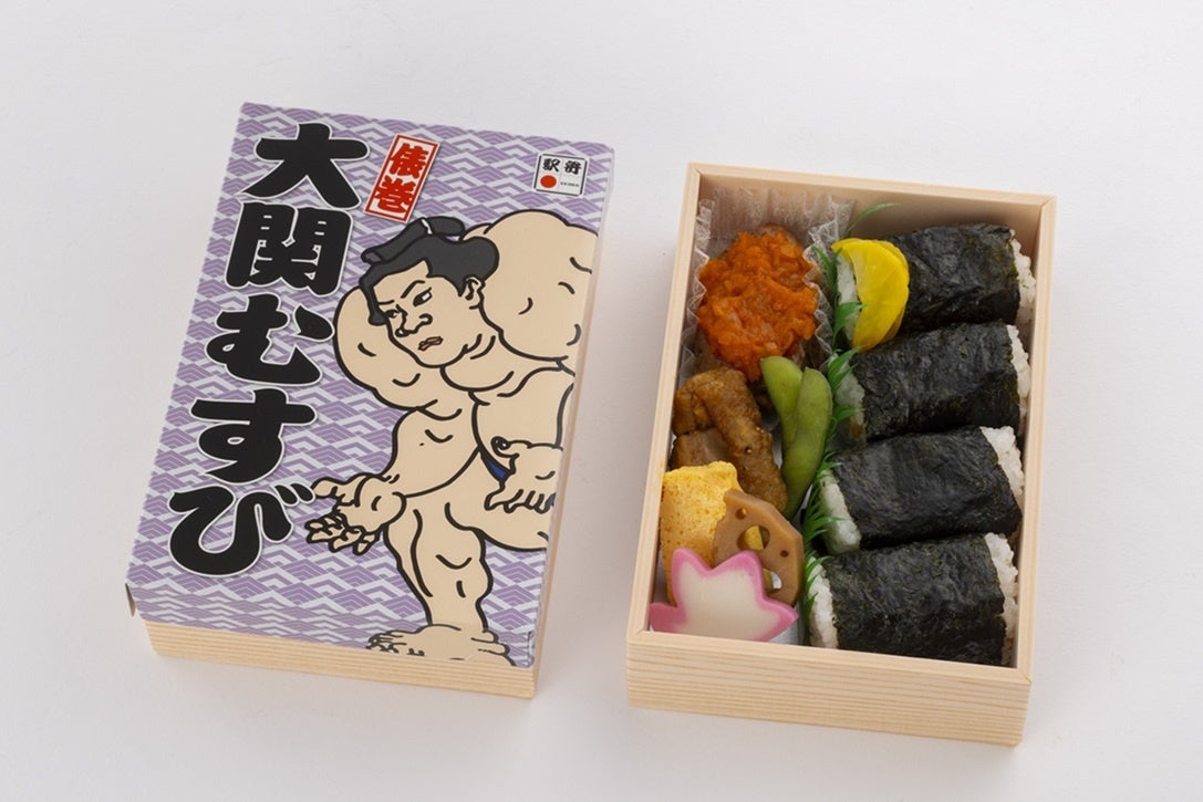 具入りの俵むすびと、人気の手作りハンバーグや唐揚げ、出巻玉子などが入ったボリューム満点のロングセラー商品です。