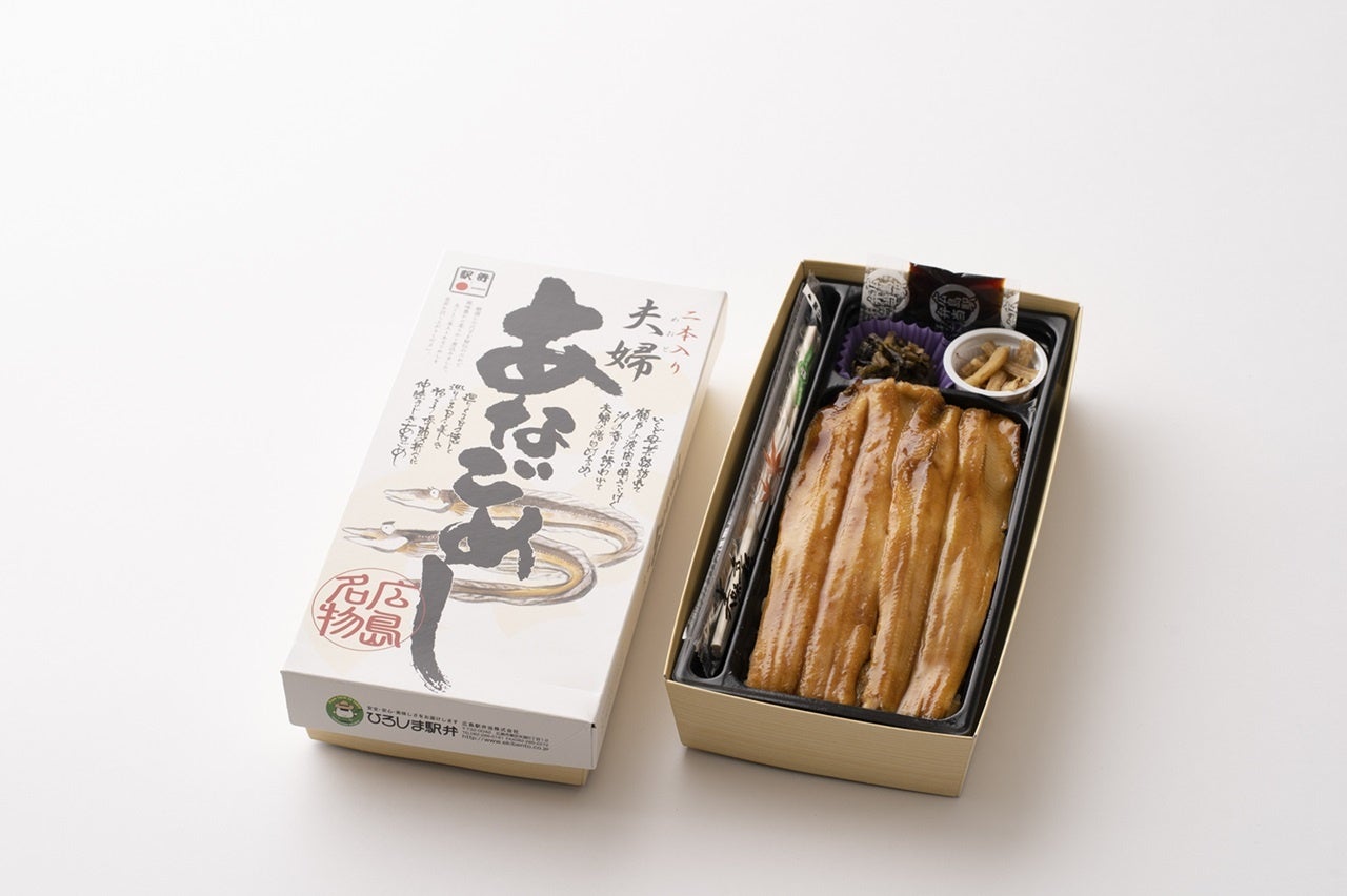 広島駅弁当で売れ筋No.1!じっくりコトコト柔らかく炊いた穴子を、特製のたれで食べやすく煮詰めました。丸ごと二本入った風味豊かな穴子飯です。
