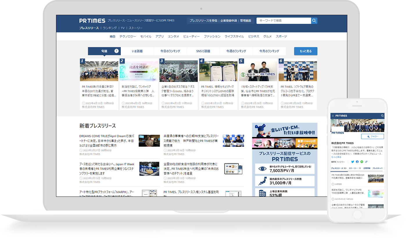 PR TIMES(読み:ピーアールタイムズ)は、「行動者発の情報が、人の心を揺さぶる時代へ」をミッションに掲げ、「行動者」のポジティブな情報がニュースの中心となり、個人を勇気づけ前向きにする社会の実現に挑んでいます。私たちは人の行動や頑張りの結晶を、その想いを紡いで発表するのがプレスリリースだと考え、企業規模を問わず「行動者」が自ら発信できる、PRの民主化を目指して事業を展開しています。プレスリリース配信サービス「PR TIMES」の利用企業社数は8万7000社を超え、国内上場企業の55%超に利用いただいています。情報収集のため会員登録いただくメディア記者2万5000人超、サイトアクセス数は月間約9000万PV、プレスリリース件数は月間3万3000件超、累計で100万件を超えています。全国紙WEBサイト等含むパートナーメディア240媒体以上にコンテンツを掲載しています(2023年8月時点)。