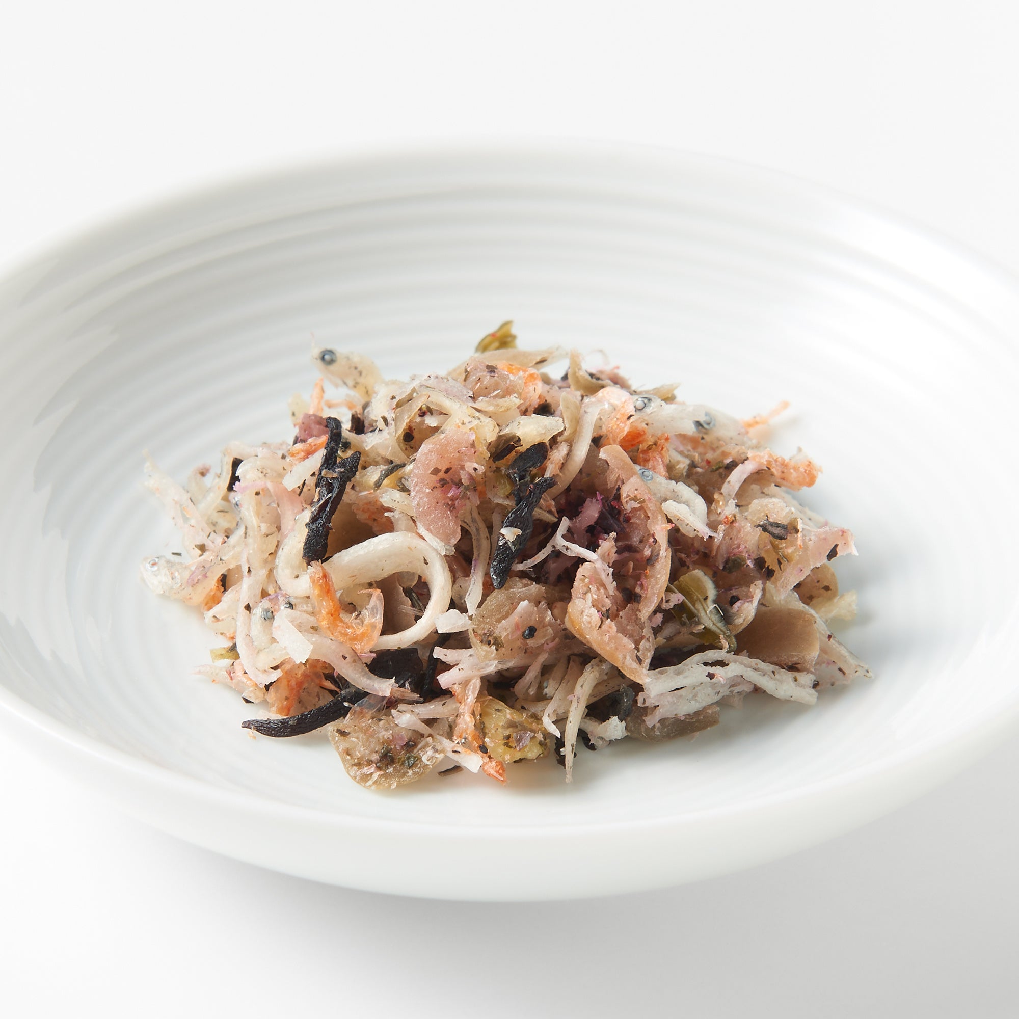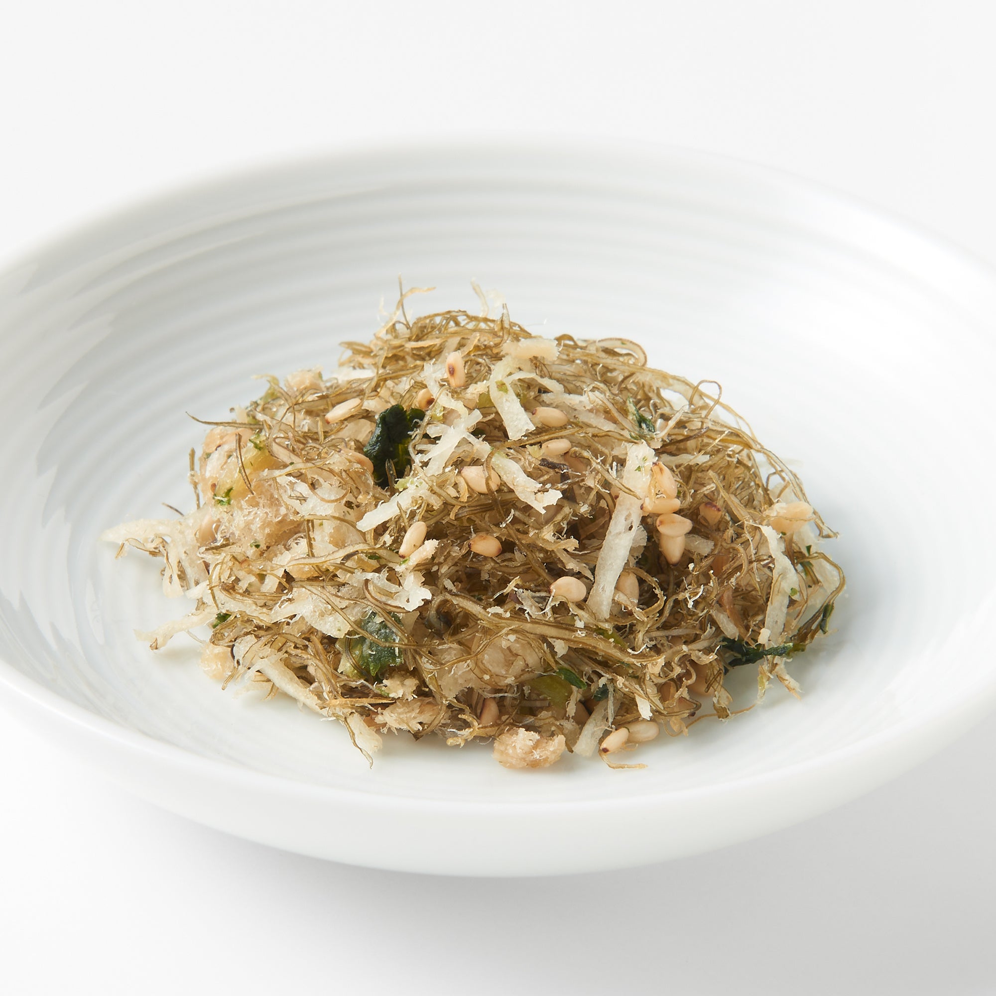 細く刻んだねばりが特長の北海道産納豆昆布にちりめんを合わせた「ちりめんと昆布」には、風味の良いあおさと胡麻を加えました。温かいごはんにのせると昆布がやわらかくなり、より海の幸の旨みが楽しめます。