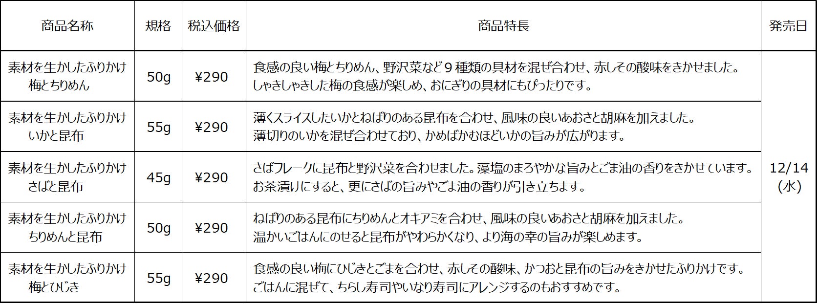 12/14(水)無印良品 素材を生かしたふりかけシリーズ 新発売のお知らせ