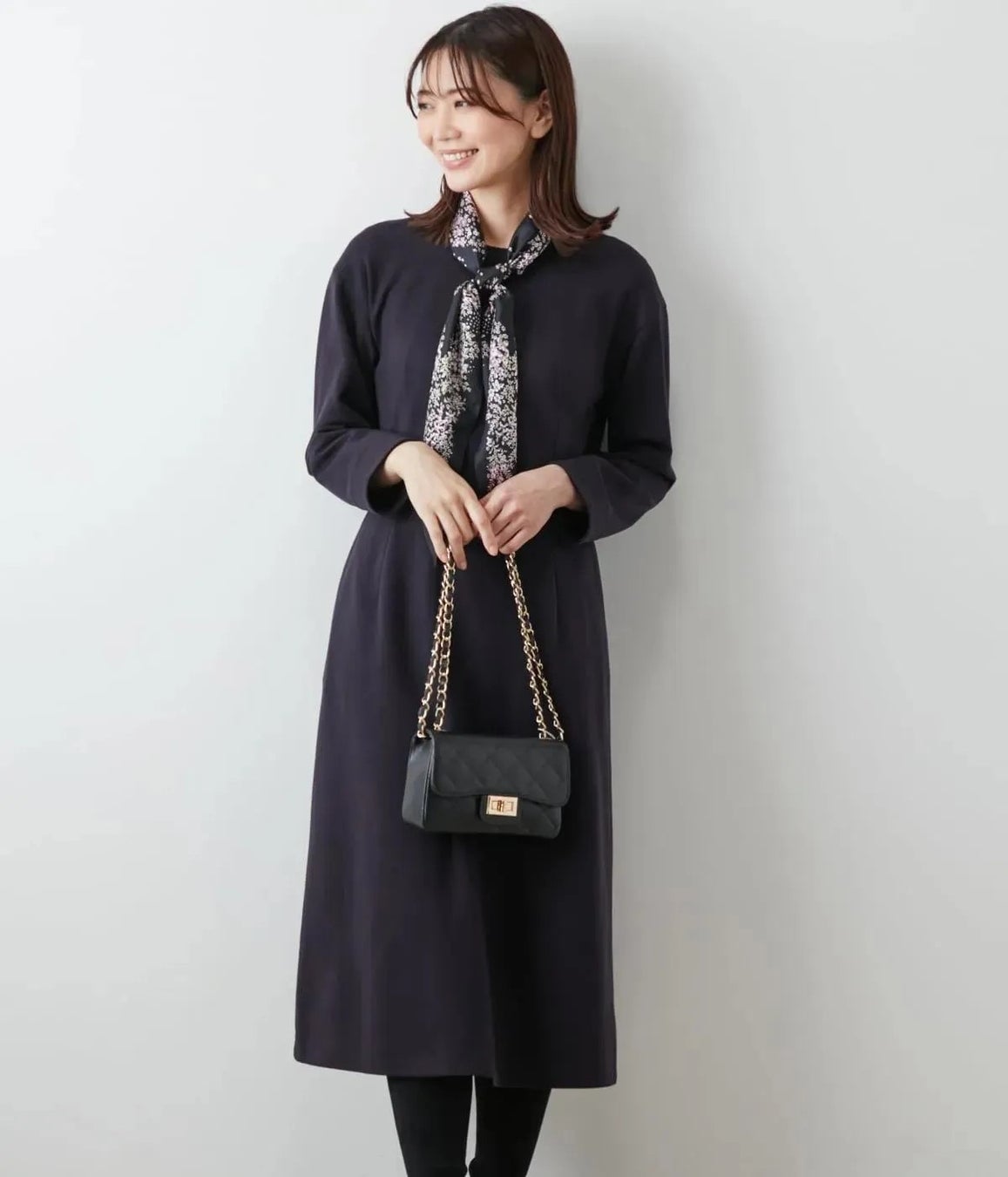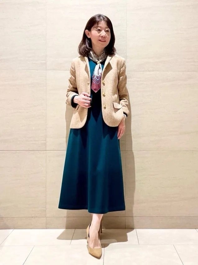 大判サイズのストールをラフに羽織れば、暖かなリラックススタイルの完成。柄物など存在感のある小物が映える着こなしです。お仕事やオケージョンシーンでは、ジャケットを合わせるのもおすすめ。程よくボリュームのあるフレアシルエットが品の良さを演出します。