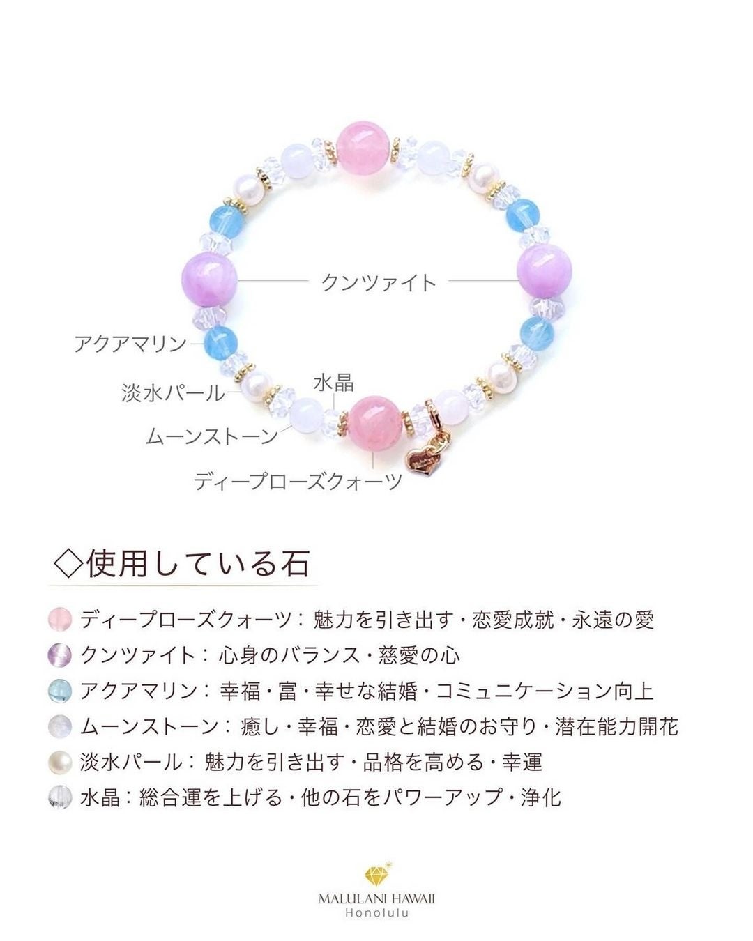 ハワイに本店を構える天然石ジュエリーブランド。「パワーストーン=心のサプリ」をコンセプトに、ハワイオアフ島のパワースポットにて浄化した天然石を使用し、オリジナルアクセサリーを製造販売しています。