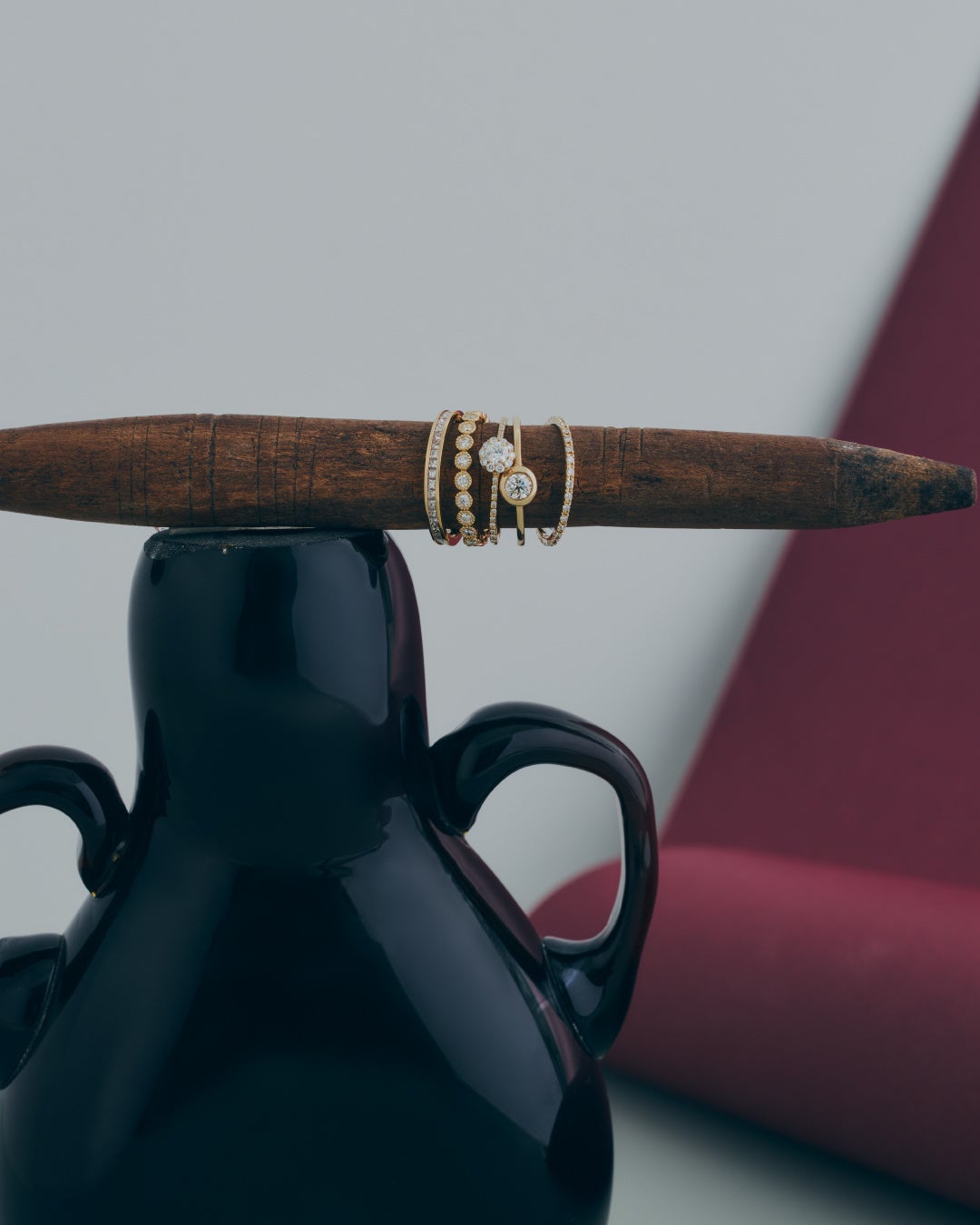 モノトーンの世界に華やぎを添える、新作ジュエリーたち。