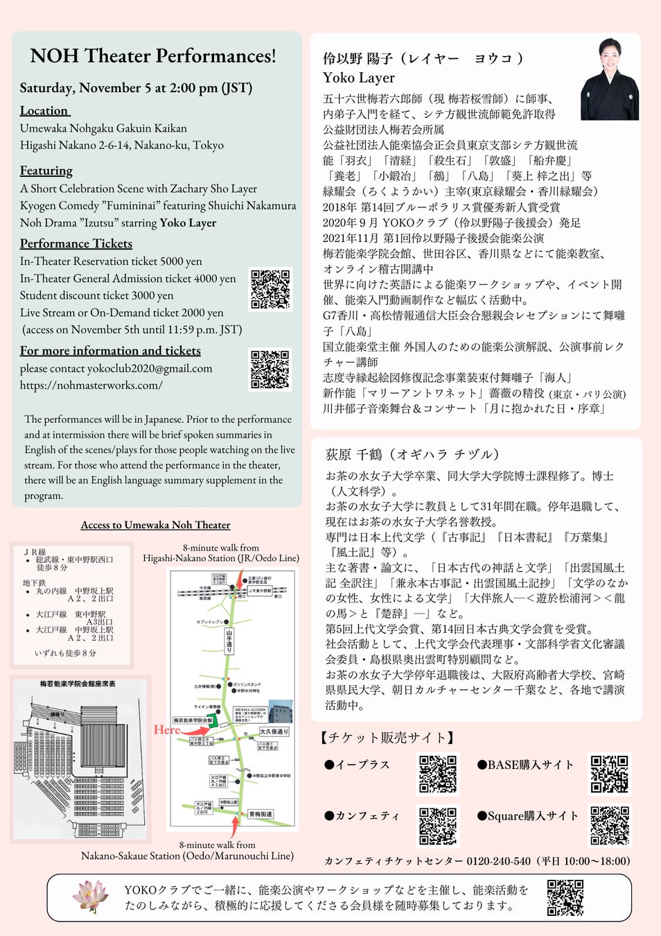 2021年11月 第一回伶以野陽子後援会能楽公演 主催 YOKOクラブ