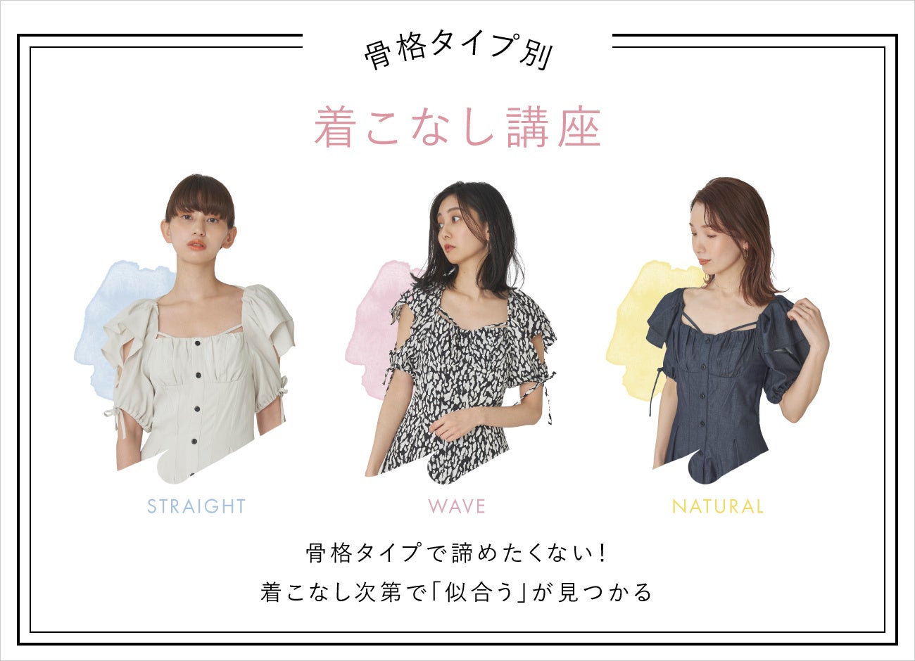 骨格ウェーブは、デコルテを出しすぎるとバランスがとりにくいので、首元の紐をしっかり絞って肩のフリルが脇より内側にくるように調節して肌見せの範囲を狭めることがおすすめです。