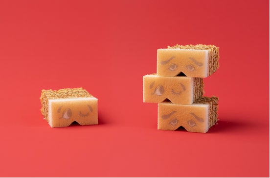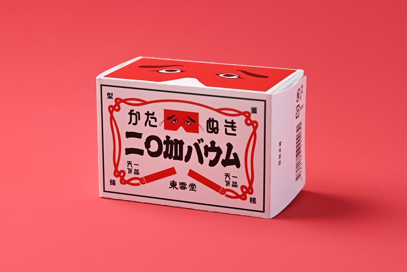 香ばしい甘さの中に天草の塩をほんのり効かせた、キャラメル風味の生地を焼き重ねた「塩キャラメルバウム」。そのバウムの一番上の白い生地をキャンバスにして、にわか面のプリントとカットをほどこしました。型抜きを楽しみながらお召し上がりいただけます。こちらもご当地バージョン・福岡限定商品です。