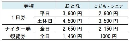 *1日券は22時まで有効です。ナイターは15時30分以降のご入場になります。