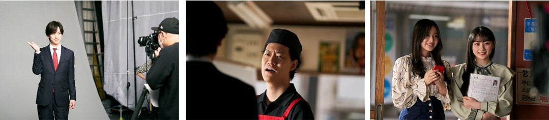 今回初共演となるDAIGOさんと霜降り明星さんですが、撮影の合間に粗品さんはDAIGOさんと共通の趣味である競馬の話で盛り上がり、せいやさんはDAIGOさんの実年齢を聞いてびっくりする様子や、若々しいルックスをキープする秘訣を聞いてDAIGOさんの答えにツッコミをいれるなど、終始明るい雰囲気で撮影が進みました。