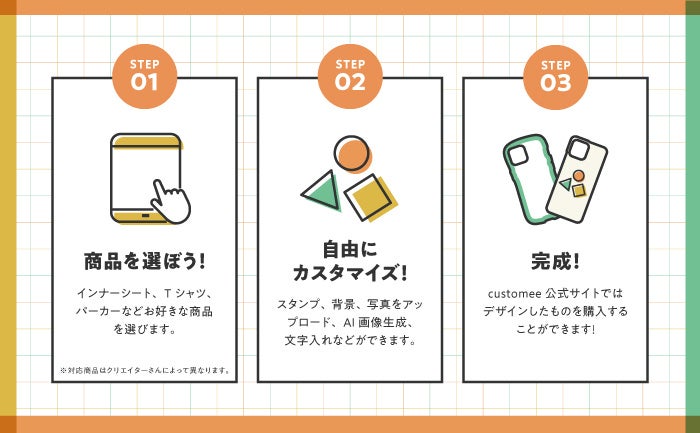 CustoMeeでは、自社ECサイトにカスタムオーダー機能を導入されたい企業様、CustoMeeに素材をご提供いただけるクリエイター様を随時募集しています。詳しくは、以下のホームページをご確認ください。