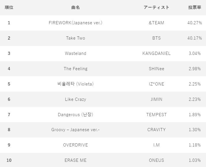■7月14日(金)の放送回で&TEAMのFIREWORKが投票で1位を獲得! |