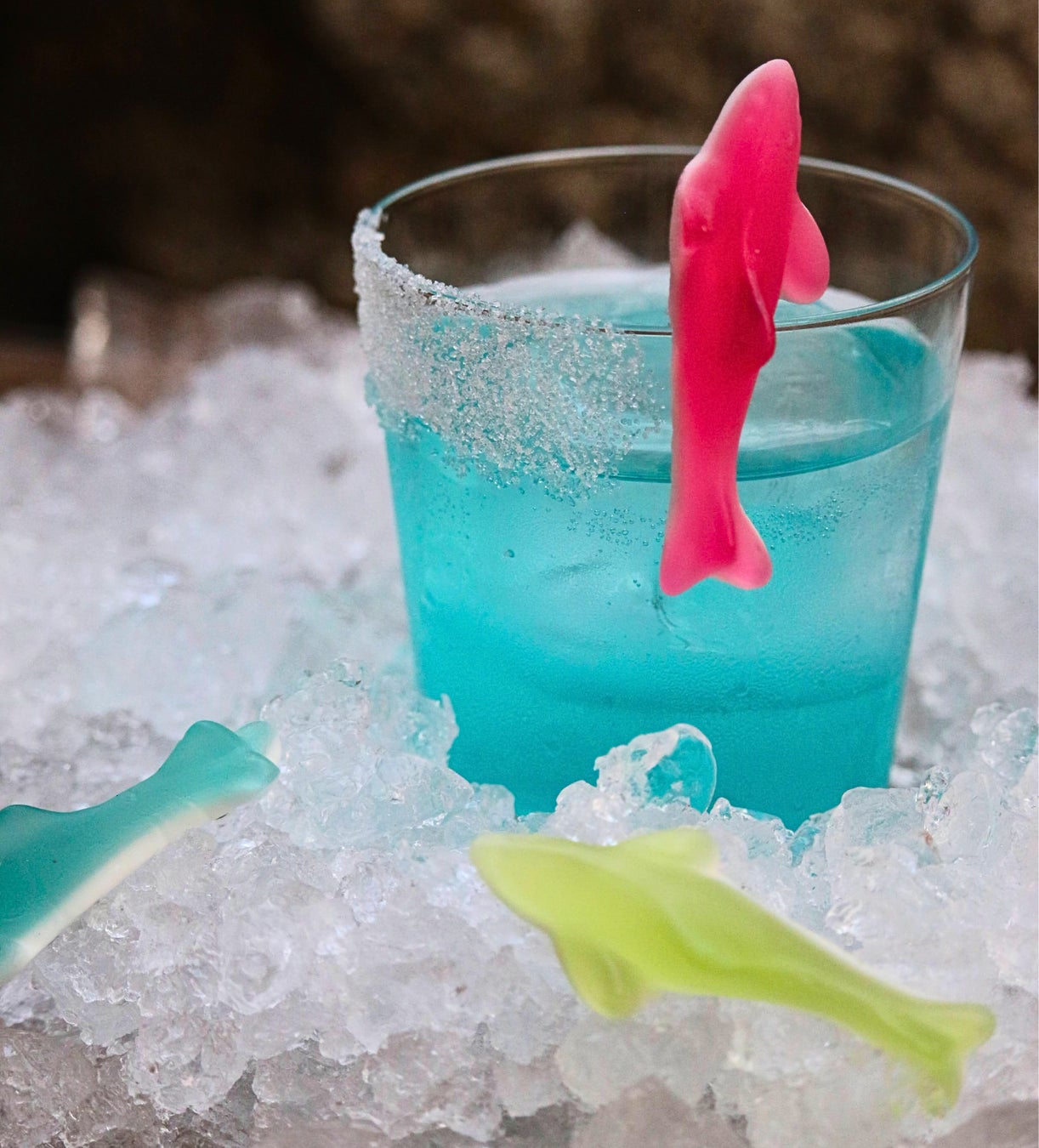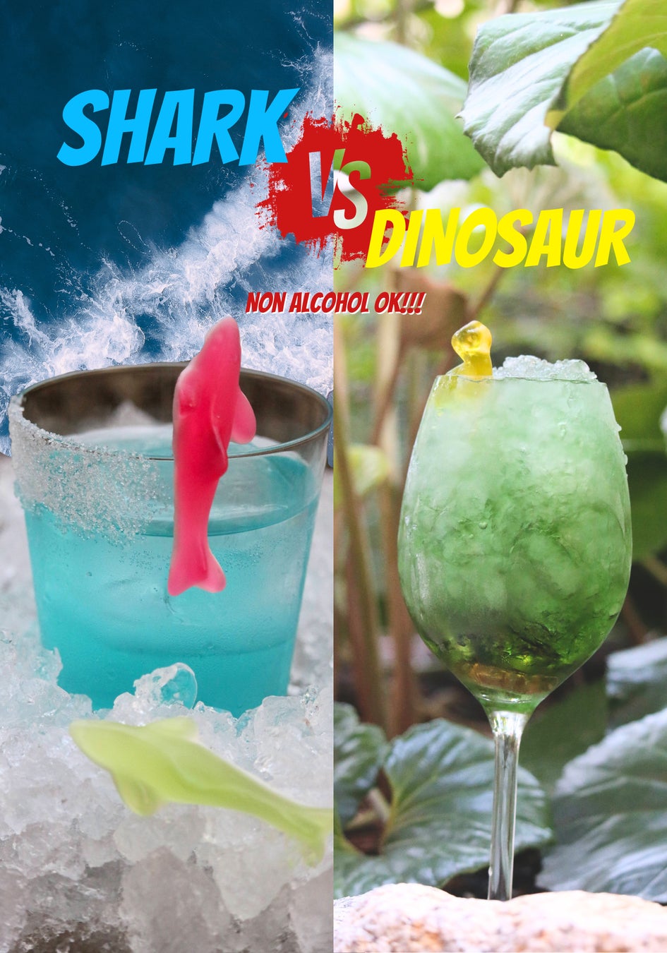 シャークとダイナソーのグミを使ったモクシーcrewのオリジナルドリンクです。