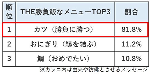 受験シーズン到来! 現役高校生500人が選ぶ「勝負飯2022」勝負飯と言えば、令和もやっぱり「カツ」!新・勝負飯基準は、‘ゲン担ぎ・縁起物’より‘とにかく自分の好きな物’
