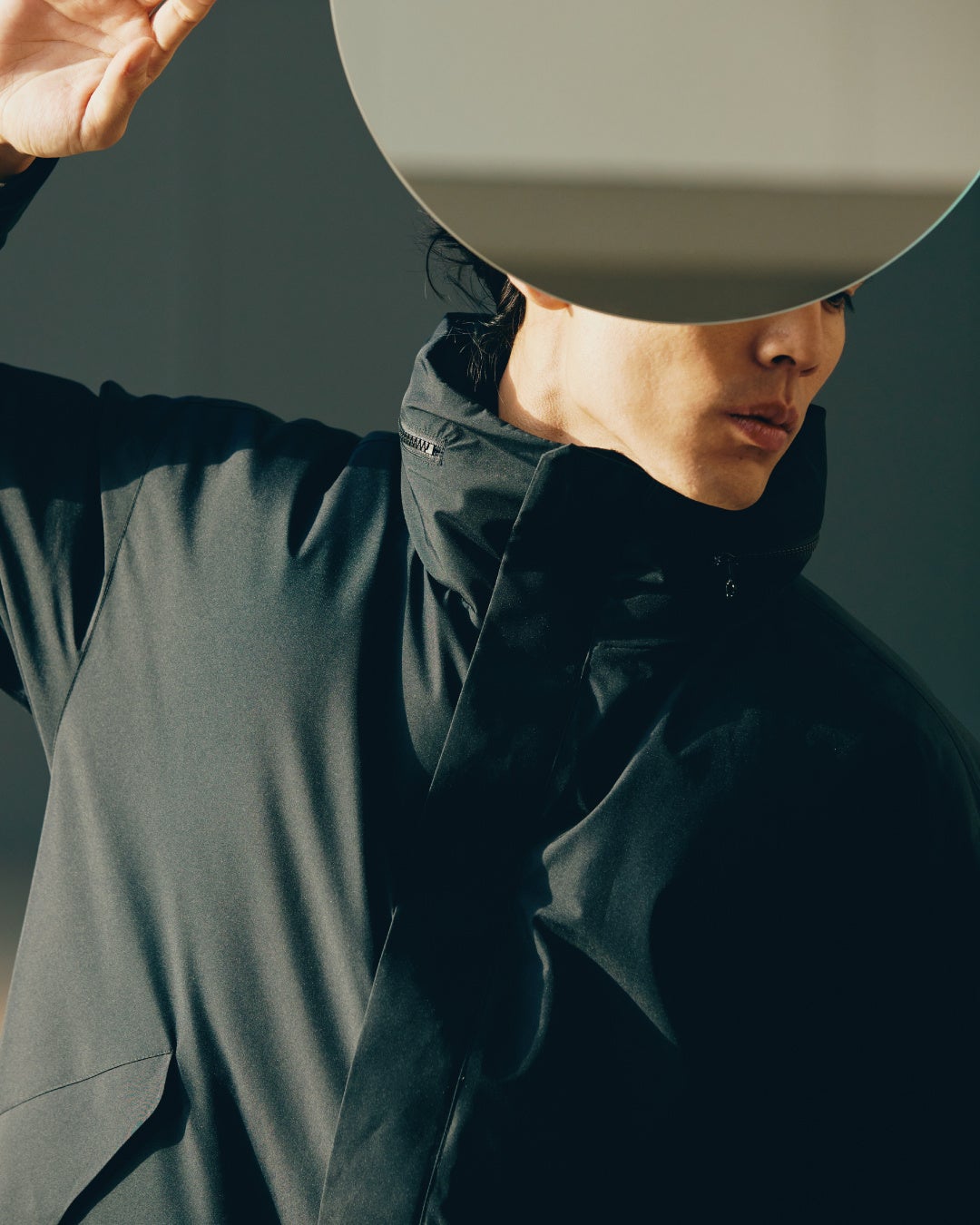 GORE-TEX INFINIUM™️を使用したショートダウンコートを製作しました。防水素材に必須のシームテープなどのパーツが必要ない分、生地のカッティングにこだわり身体にフィットするシルエットを追求。華美なデザインを避け、ディテールを削ぎ落とした佇まいはどこか都会的です。冷たいビル風を通さない防風機能と、電車の中で汗をかいても蒸れない透湿機能も完備。ちょっとしたお出かけからビジネスシーンまで、雨があまり降らない日本の冬にぴったりのデイリーウェアが完成しました。