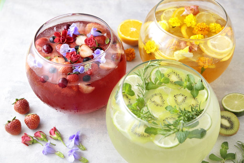 フルーツやハーブを使ったノンアルコールも充実の華やかなドリンクブースや、ジェラートブースをご自由にお楽しみいただける他、お料理は出来立てをテーブルまでお持ちする、リゾートスタイルでご提供いたします。