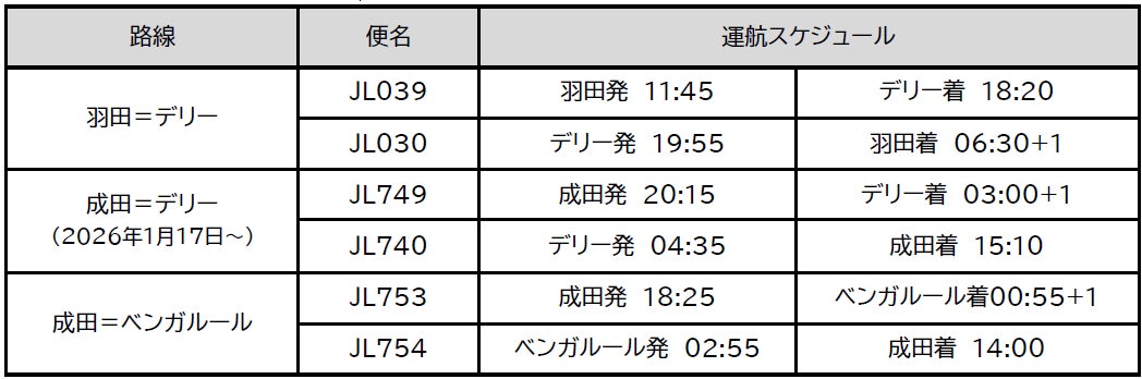 JALは、2026年1月17日より新たに成田=デリー線を開設します。これにより、日本=インド間のネットワークは羽田=デリー線・成田=ベンガルール線、成田=デリー線の3便に広がります。引き続き、成田を東南アジア・南アジアと北米を結ぶハブとして強化し、ネットワークを拡大してまいります。