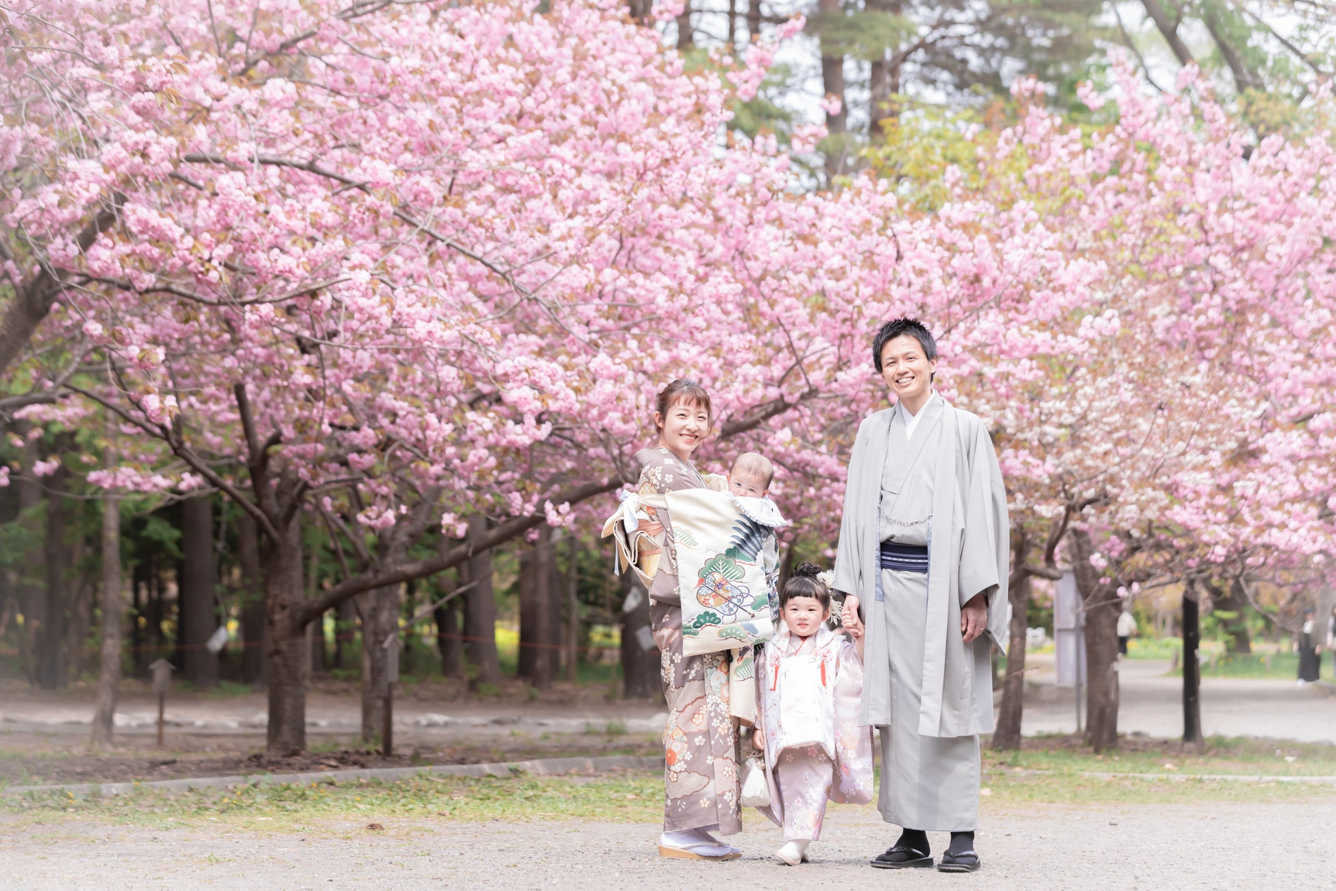 「七五三を撮り逃してしまった」という後撮り需要にも完全対応。これからの季節であれば、北海道の遅い春、桜のシーズンに合わせた入学ロケーション撮影と、七五三スタジオ撮影を組み合わせるなど、季節の移ろいを背景に取り込んだ撮影が可能です。
