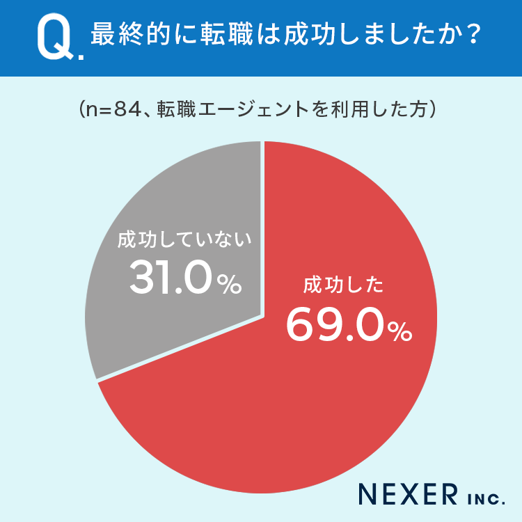 69%と約7割の方が、転職エージェントを利用して「転職に成功した」と回答しています。